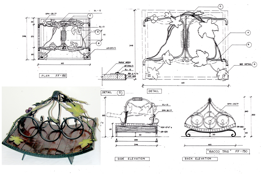 Combination of wrought Iron and wood to create an holder for bottle of wine.