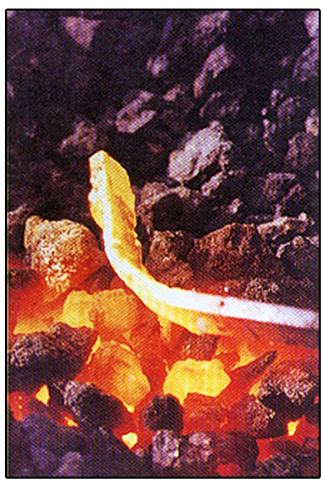 ที่เมืองคาตาโลเนีย เมื่อเหล็กร้อนจะใช้ค้อนทุบเพื่อกำจัดสารเจือปน และทำการเชื่อมอนุภาคของเหล๊กให้ติดกัน