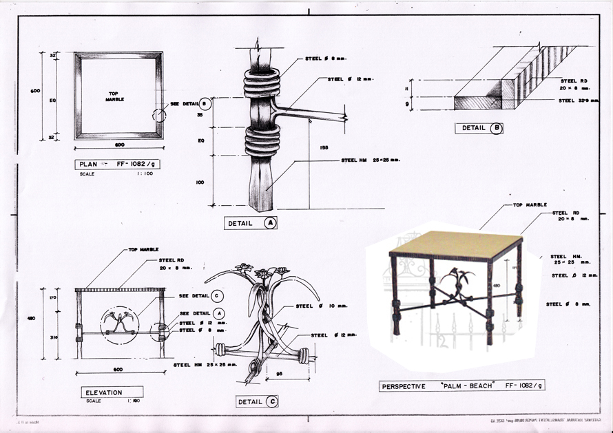 ตารางเหล็กดัดแข็งที่ขาจะปั้นแต่งขึ้นและเรียวจากเหล็กกลม 25 mm.solid Framerolled ในรูปร่างของท็อปส์ซู Rod.Available U.R. เอียงกระจก 8 มม. ชั้นหินอ่อน
