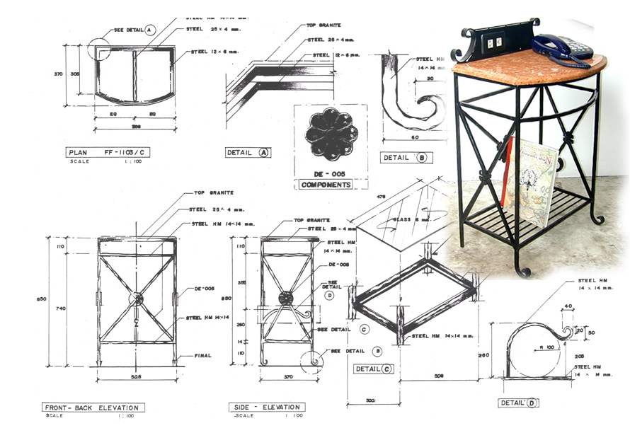 Wrought Iron stand for Telephone and book shelf.Bottom support for glass.Available top:Granite black Africa Marble black Thai.
